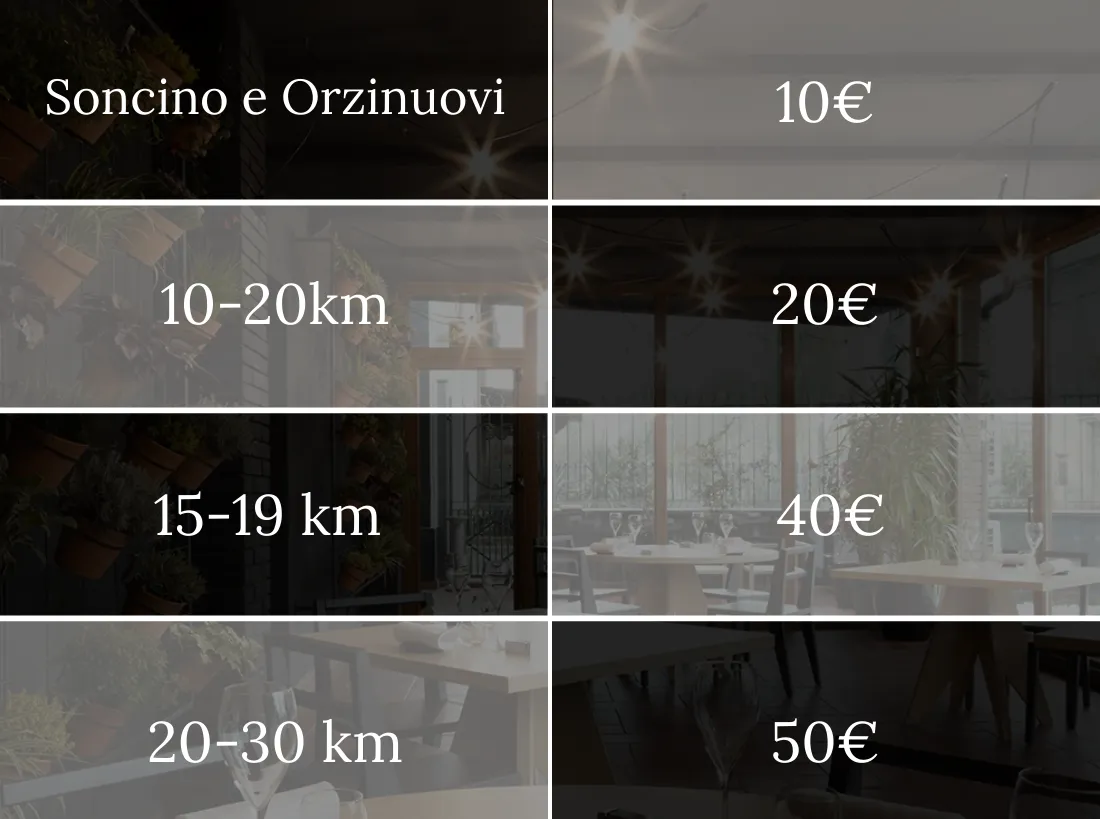 Solo per 2 tavoli a sera: al trasporto ci pensiamo noi